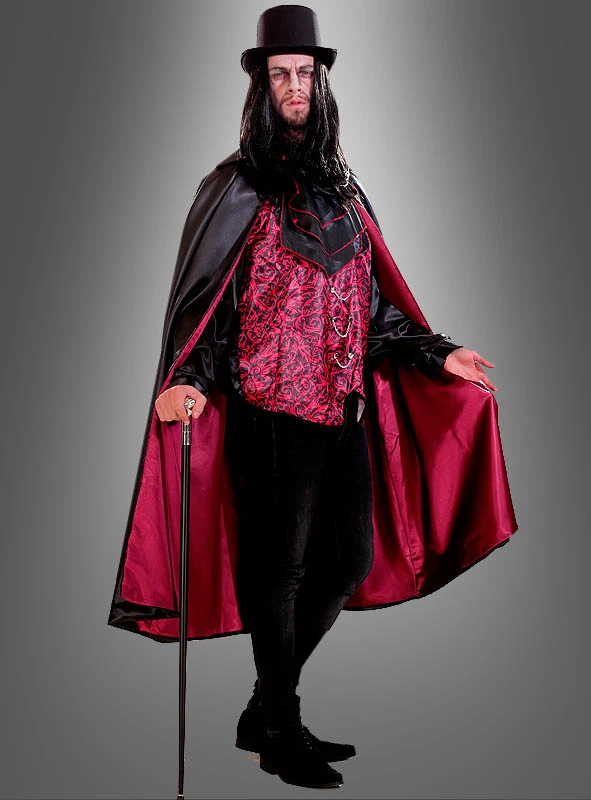 Das Feinste vom Feinsten für die Fürstin und den Fürsten der Finsternis. Dracula wäre begeistert von diesem schicken langen Umhang. Das Cape ist innen mit edel schimmerndem Satinstoff in dunklem bordeaux gefüttert. Ein wirklich schöner Überwurf für das Vampirpaar.