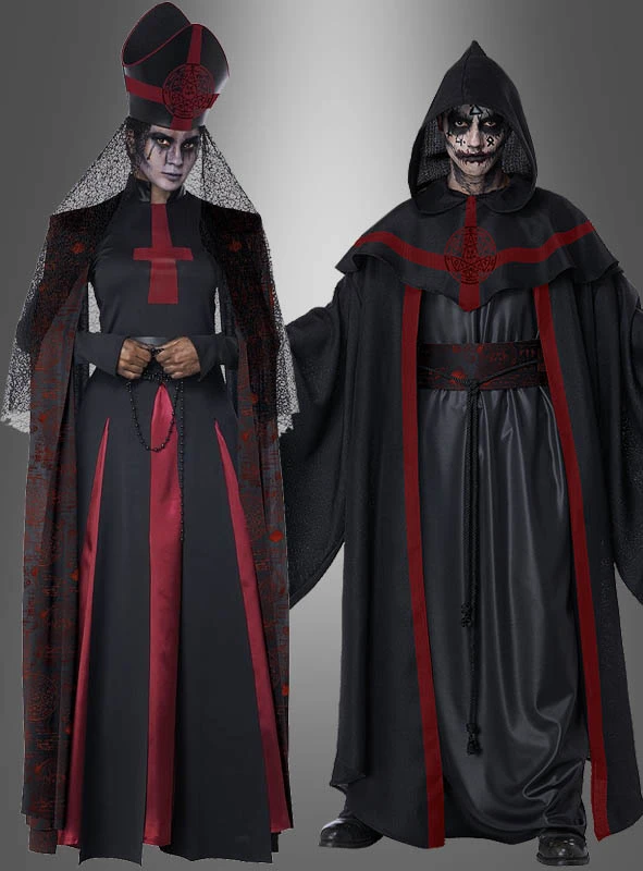 Diese Priesterin geht wohl eher in einen geheimen Tempel, als in eine Kirche. Für eine schwarze Messe an Halloween ist diese dunkle Priesterin immer bereit. Und damit Sie bei den unheimlichen Zeremonien nicht alleine sind, gibt es das Partnerkostüm für Herren ebenfalls in unserem Sortiment.