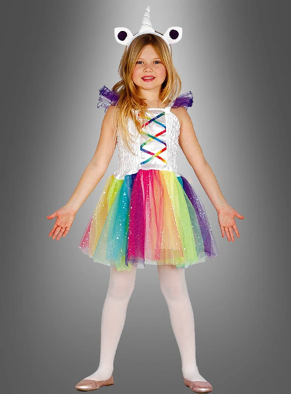 Tauche ein in eine Welt voller Magie mit den Einhorn Fantasy Kostüm für Mädchen. Wenn du Pferde und Fabelwesen magst, ist dieses Kleid genau die richtige Karnevalsverkleidung für dich. Als edelstes und reinstes aller mystischen Geschöpfe machst du bestimmt einen guten Eindruck, egal ob beim Themengeburtstag oder beim Kinderfasching.