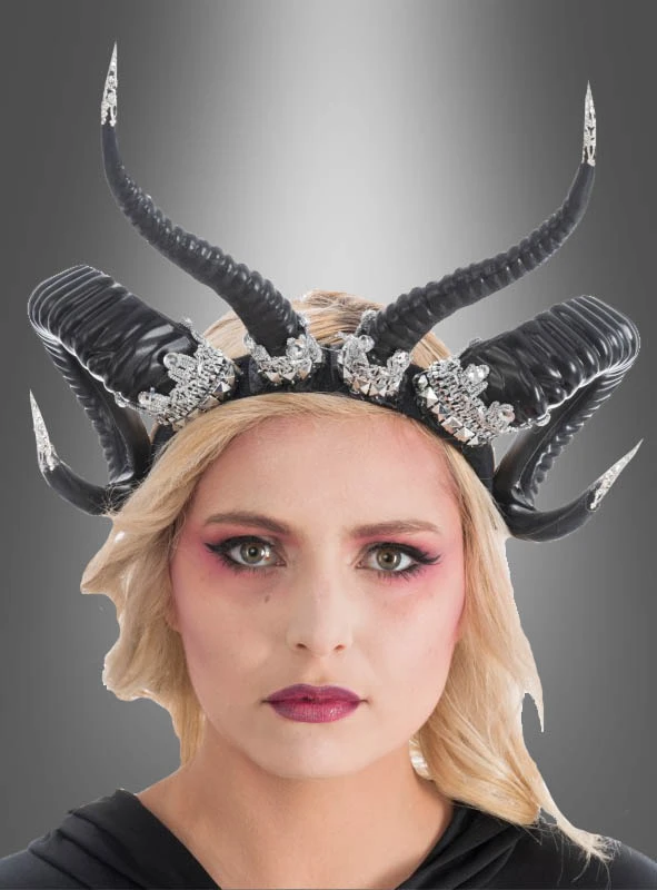 Dieses Geweih als Kopfschmuck sieht einfach bezaubernd aus. Die vier Hörner sind an einem stabilen Haarreif befestigt. Silberne Nieten und Fäden schmücken das Geweih und verleihen eine mysteriöse Ausstrahlung. Das macht diesen märchenhaften Kopfschmuck noch schöner und edler.
