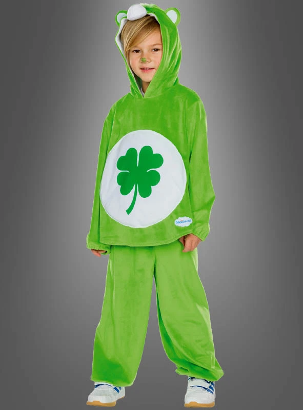 Glücksbärchi hat immer ganz besonders viel Glück, aber er ist auch ein Glücksbringer für andere. Sein Markenzeichen ist grünes Fell und ein vierblättriges Kleeblatt auf dem Bauch. Daher hat natürlich auch das langärmelige Oberteil das entsprechende Symbol auf der Vorderseite. Das Kostüm ist für Mädchen und Jungs geeignet.