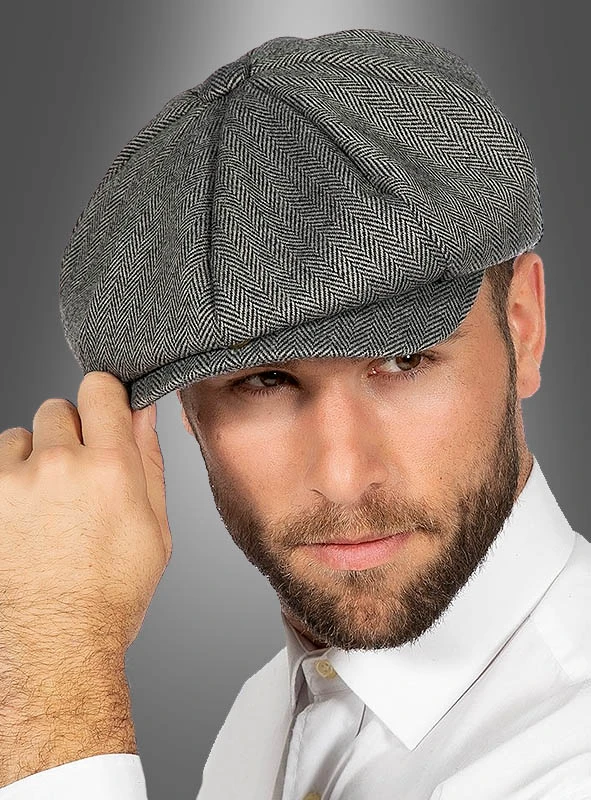 Eine graue Schiebermütze, mit der Sie sich wie ein Mitglied der Peaky Blinders Shelby Familie aus Birmingham fühlen können. Schildmützen sind seit der Jahrhundertwende modern und beliebt. Sie können die graue Schiebermütze zum 20er Jahre Kostüm im Gangster Style tragen und danach als coole Mütze zu Alltagskleidern. Genial!