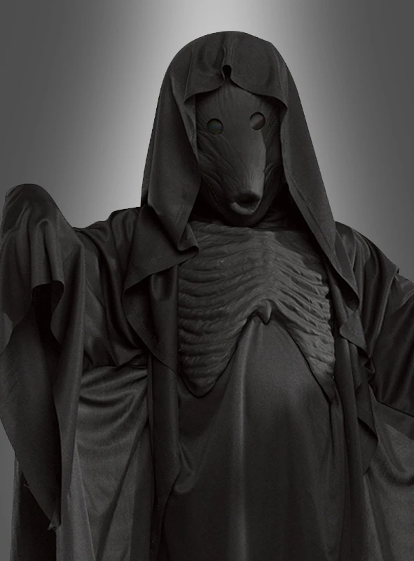 Dieses Kostüm fängt das ureigene Wesen der schwarzen Dementoren geschickt ein. Es besteht aus einem Umhang, der in schwarzen Fetzen vom Körper hängt, und auch hunderte Jahre alt sein könnte. Unter der Halbmaske bleiben Sie ganz sicher unerkannt, und das Brustteil wirkt, also würde alte und knochige Rippen herausstechen.