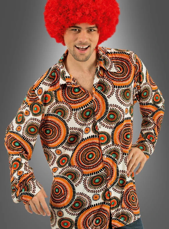 Das Hemd im 60er Jahre Design ist der Hit. Mit dem psychedelischen Kreismuster kommt garantiert Partystimmung auf. Perfekt für Disco- und Schlagerpartys und für alle, die keine kompletten Kostüme mögen.