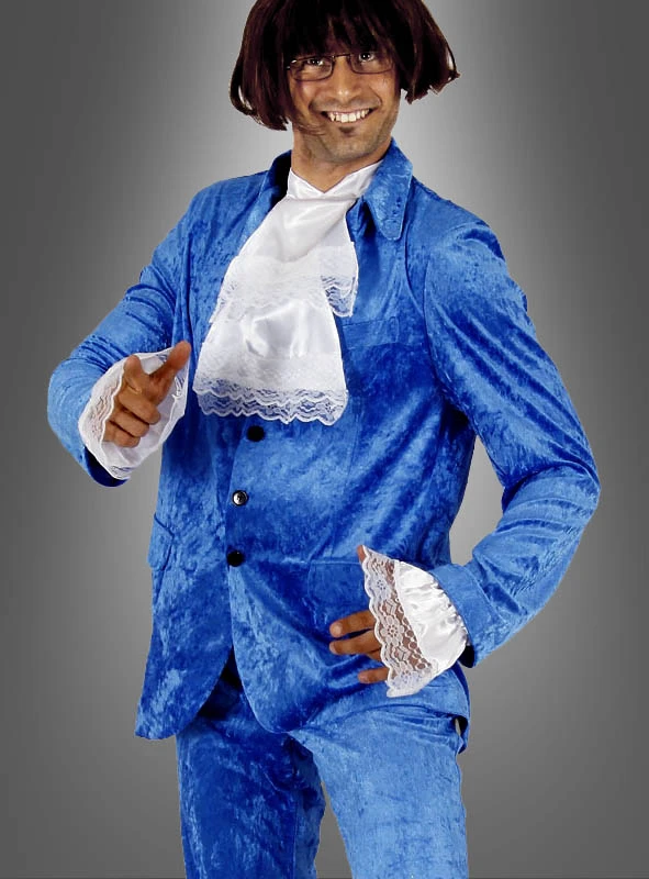 Das Spionkostüm in Deluxe Qualität besteht aus einem Jackett aus blauem, weichem Samtstoff. Die Jacke kann vorne geknöpft werden. Kragen und Revers sind verstärkt und bleiben so schön in Form. In den Schultern sind Polster eingearbeitet. Am Ärmelsaum ist weißer Satinstoff mit Spitzenborte eingenäht. So entsteht der Eindruck, dass unser Spion ein weißes Hemd unter dem Jackett trägt. Vorne sind zwei Taschen mit Blenden eingearbeitet. Hier können Sie die Agenten-Pistole verstauen, die separat bestellbar ist. Im Rücken am unteren Saum ist mittig ein Schlitz eingenäht. Der sorgt zusätzlich für Bewegungsfreiheit beim Tanzen oder Bösewichte jagen.
