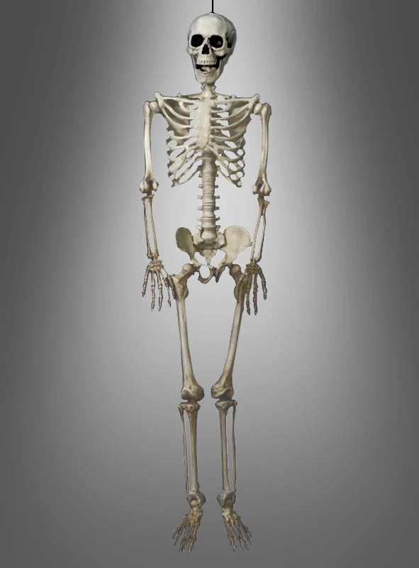 Hier kommt der Knochenmann, der Reaper oder Schnitter. Ein hängendes Skelett als Halloween Deko kann vieles sein und hat viele Namen. Auf jeden Fall hängt dieses Skelett gerne auf Halloween Partys rum und beobachtet die Gäste ganz genau.
