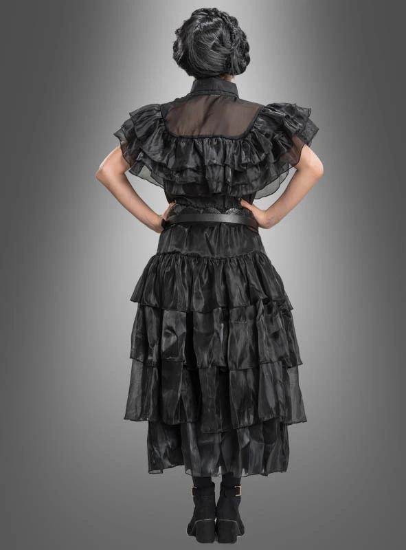 Die Addams Family Tochter hat eigentlich keine Lust auf den Schulball. Aber im Wednesday Kostüm Ballkleid für Mädchen ist sie der Star des Abends. Das Original Netflix Lizenzkostüm ist ein Traum aus Tüll und begeistert alle.