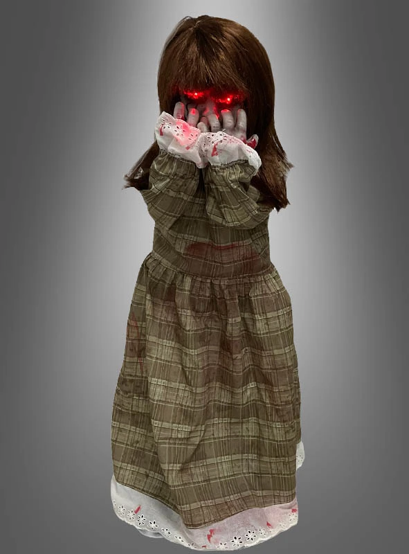 Diese weinende Puppe ist gruselig animiert. Sie hält ihre kleinen Hände vor ihr Gesicht. Aber niemand sollte ihr zu Nahe kommen. Bei lauten Geräuschen oder Berührung kommt Leben in die 90 cm große Horror Puppe. Sie nimmt ruckartig ihren Kopf nach hinten und man sieht ihre rot leuchtenden Augen und die blutigen Tränen, die über das Gesicht gelaufen sind. Dabei ertönt gruseliger Sound! Horror pur! Für den Betrieb benötigen Sie 3 x AA Batterien (nicht enthalten). Sie sollten nach Erhalt der weinenden Puppe neue, starke Batterien einlegen, damit die Animation richtig funktionieren kann.