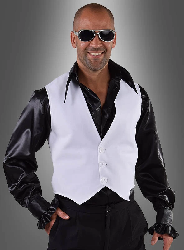Wer hätte nicht gerne immer eine weiße Weste? Tolles Kostüm Accessoire für 20er Jahre Mafia Kostüme und auch für 70er Jahre Disco Outfit. Nightfever pur! Diese Weste passt zu vielen Karnevalskostümen.