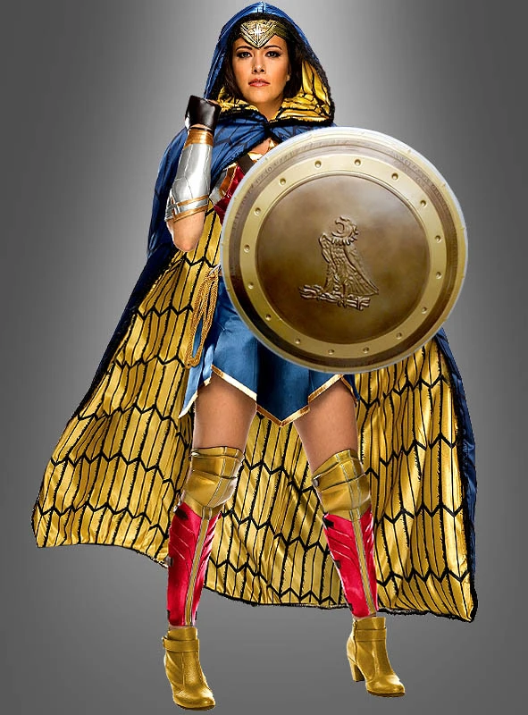 Eine echte Amazonenprinzessin braucht natürlich auch Waffen. Zum Lieferumfang dieses original Wonder Woman Deluxe Kostüms gehören auch das Schwert aus Kunststoff, das etwa 66 cm lang ist. Der leichte Schild ist ebenfalls aus Kunststoff und ca. 62 cm im Durchmesser.